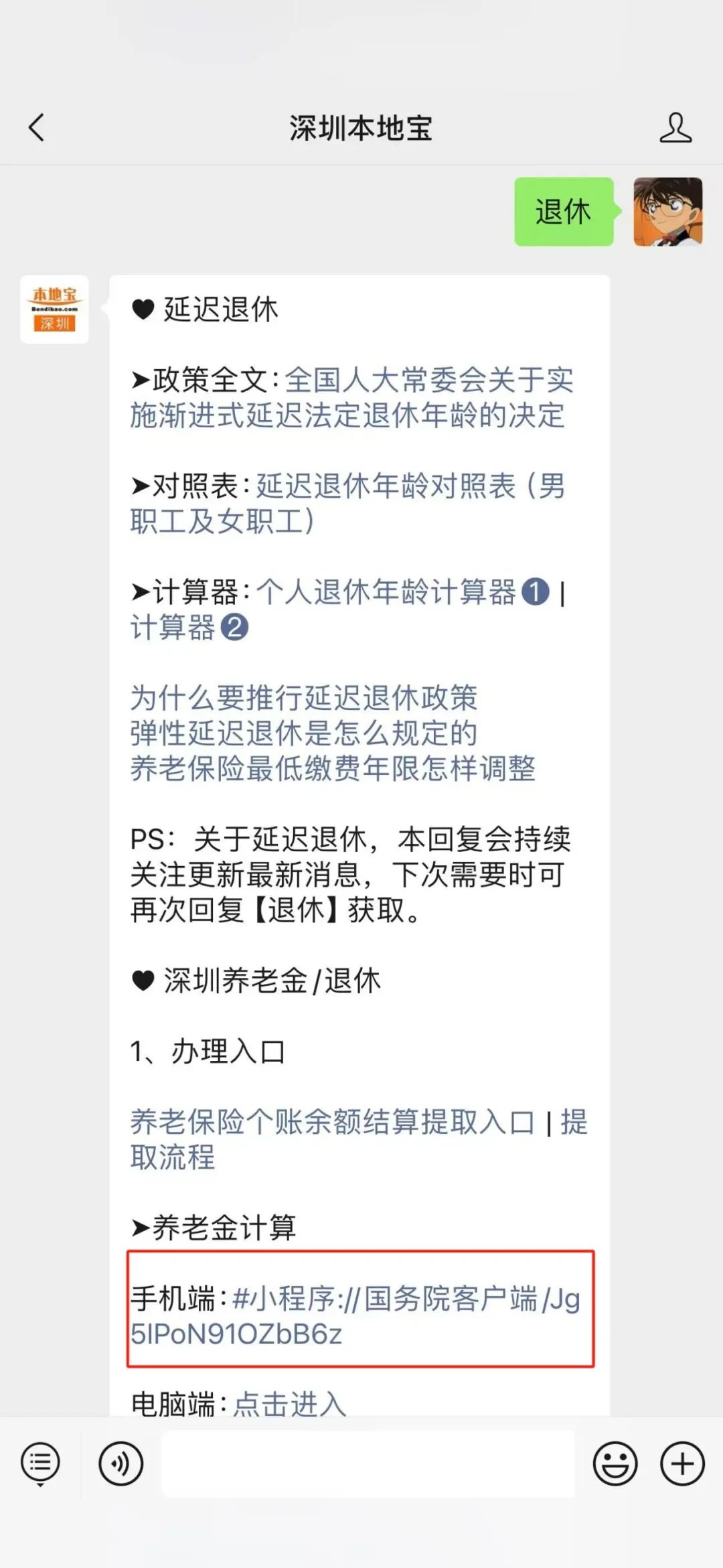 也可以直接扫描下方二维码,关注【深圳本地宝】,回复关键字【退休】,获取养老金计算入口